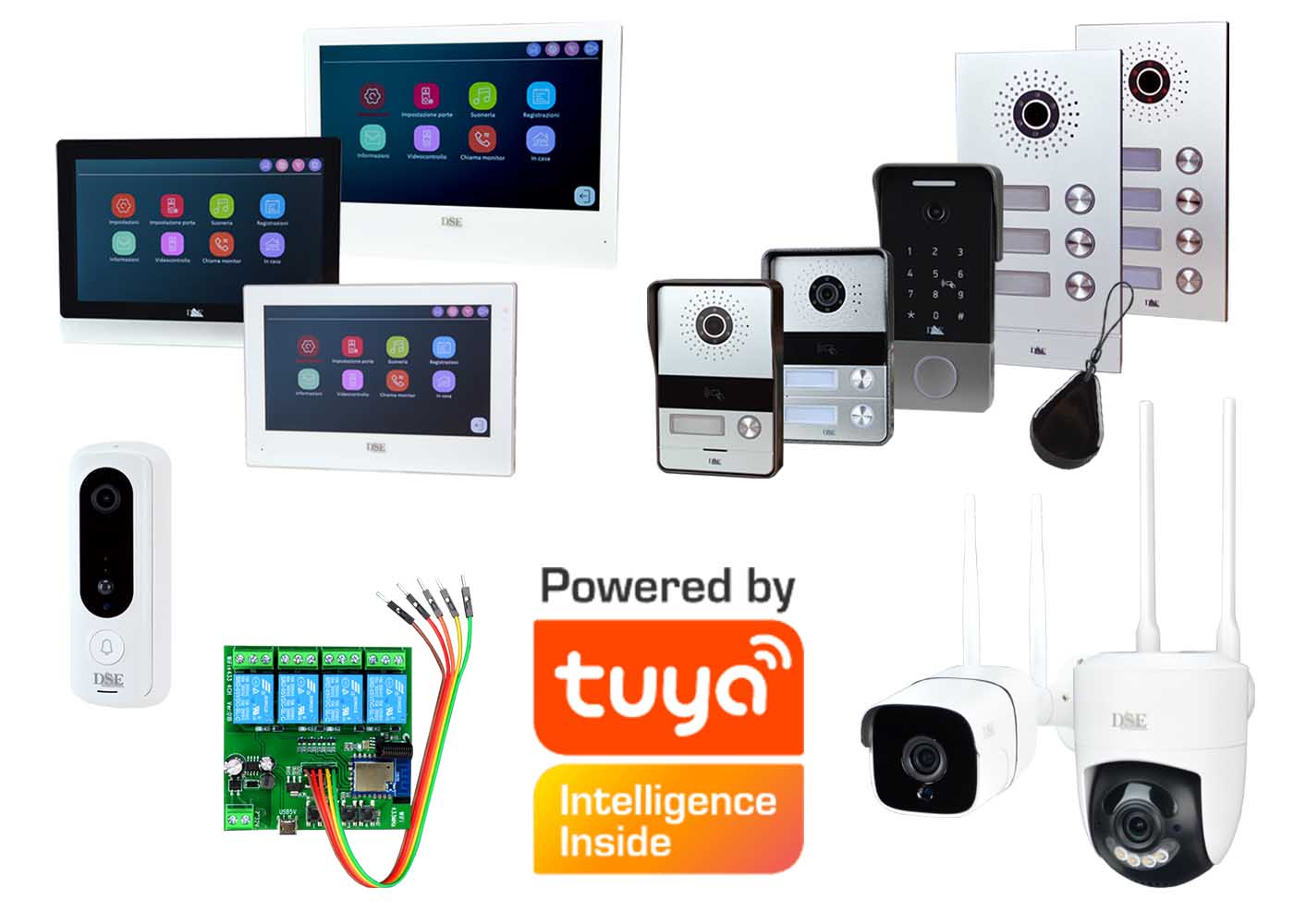 These Tuya NVRs act as a bridge between two very different digital protocols: the professional video surveillance standard Onvif and the home automation standard Tuya. Our professional video surveillance systems use the Onvif standard and our IoVedo.RK app. They consist of cameras and NVRs with many programmable functions, typically installed via wired connections and almost always requiring the use of a computer. Our home automation products, such as video intercoms, smart cameras, etc., instead use the Tuya standard and the Smartlife app. These are mostly Wi-Fi products, with fewer programmable functions, but they are extremely easy to install by yourself, wireless, and require only a smartphone. There are many home automation products that use the Tuya standard — on the side, you can see the ones we manufacture.
