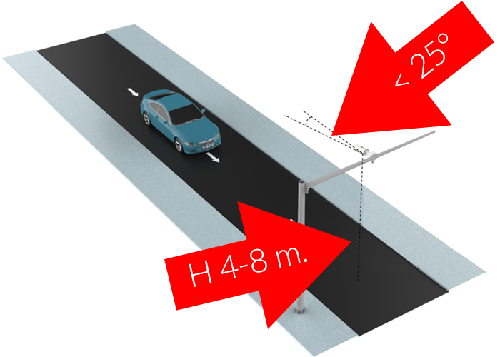 Although these cameras can read license plates in virtually any road-side scenario, the highest reading accuracy is achieved at the ideal distance of 5 to 30 meters. The cameras can be installed either above the roadway or on the roadside, maintaining an optimal height of 4 to 8 meters and an angle of less than 25° relative to the direction of vehicle travel. They can capture both front and rear plates, monitoring up to 3 lanes. Once the camera is installed, all adjustments can be performed remotely via computer.