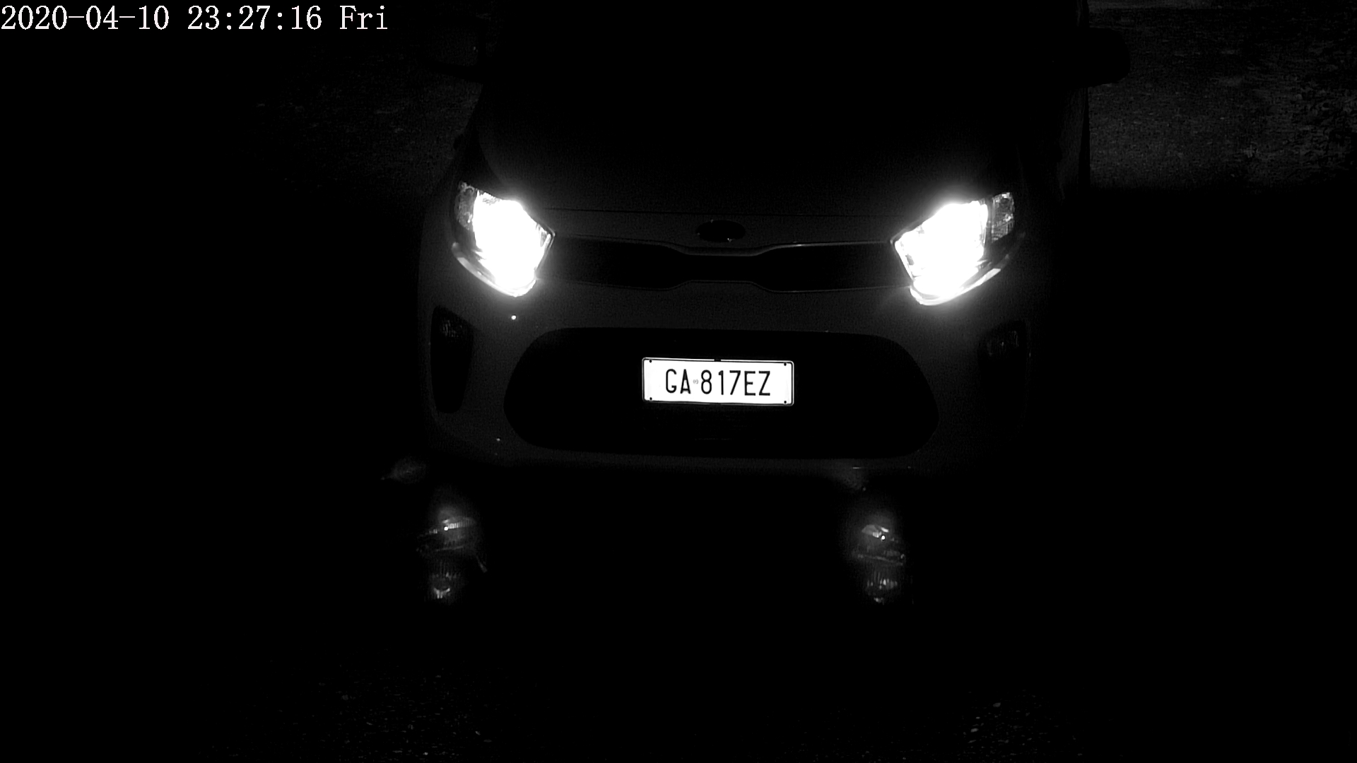 These ANPR cameras are equipped with an anti-glare system that allows them to capture license plates even at night, when standard cameras are blinded by vehicle headlights. In night mode, the cameras produce a very dark image that highlights the plate, illuminated in the darkness by the camera’s infrared illuminator, as shown in this example.