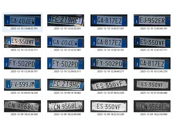 These cameras already feature built-in internal storage for recording license plates and vehicle videos. In addition, they include a slot for a microSD card of up to 1 TB, allowing video recording even when no vehicles with detected license plates are present. Recording can be triggered by an intelligent alarm that detects anomalous situations, or it can be set to continuous mode based on a scheduled time program. Once the available storage space is full, automatic overwriting of the oldest files is typically enabled. You can easily review and download recordings remotely, and use the camera for recording even without an NVR.