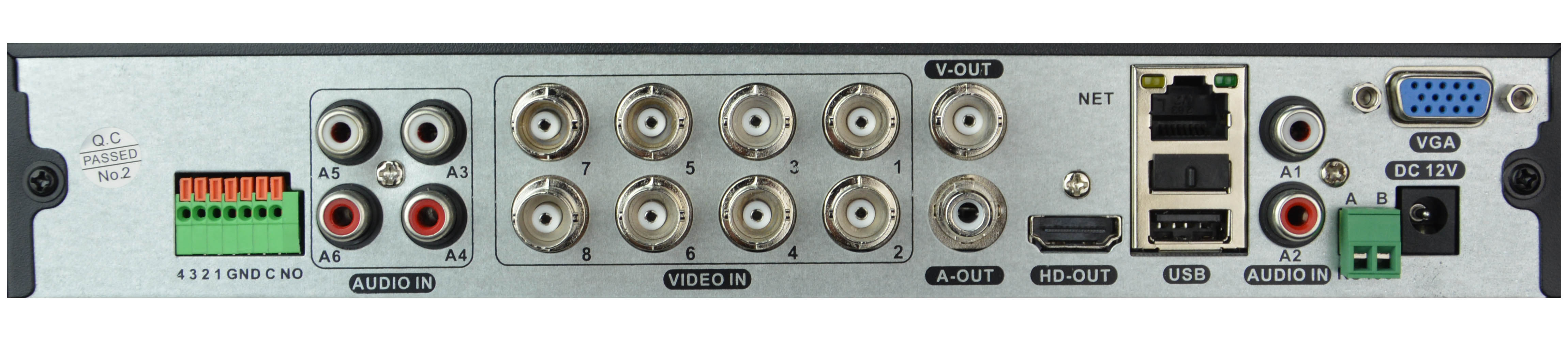 The DVRs in this range are equipped with 3 monitor outputs: HDMI, VGA and BNC.