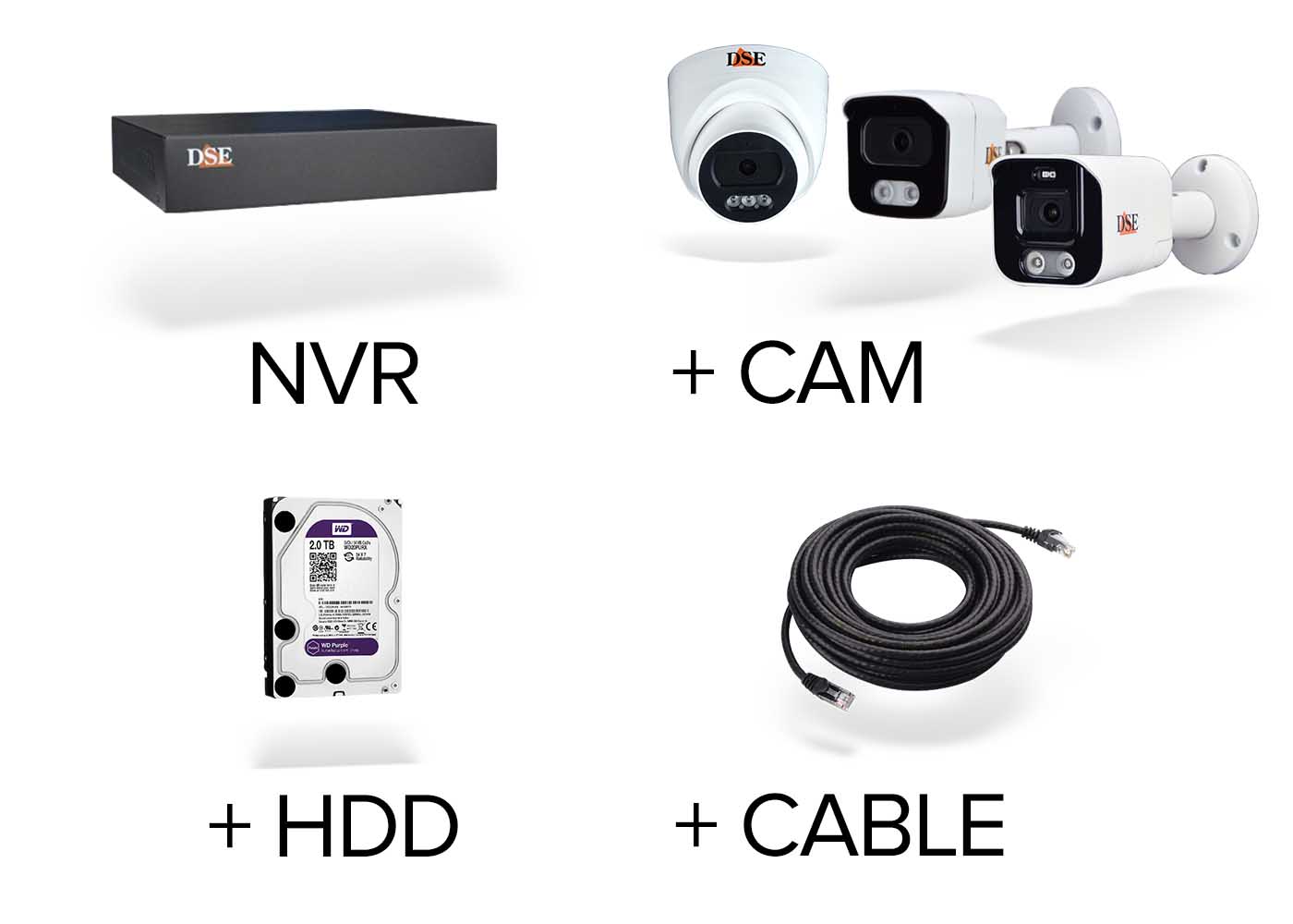 To record footage you need to order a hard disk that we will deliver installed inside the NVR. A larger hard disk contains more video archive. Here you have our HDD capacity calculator. For these kits we recommend 1TB to 4TB hard disks, depending on the quantity of cameras.