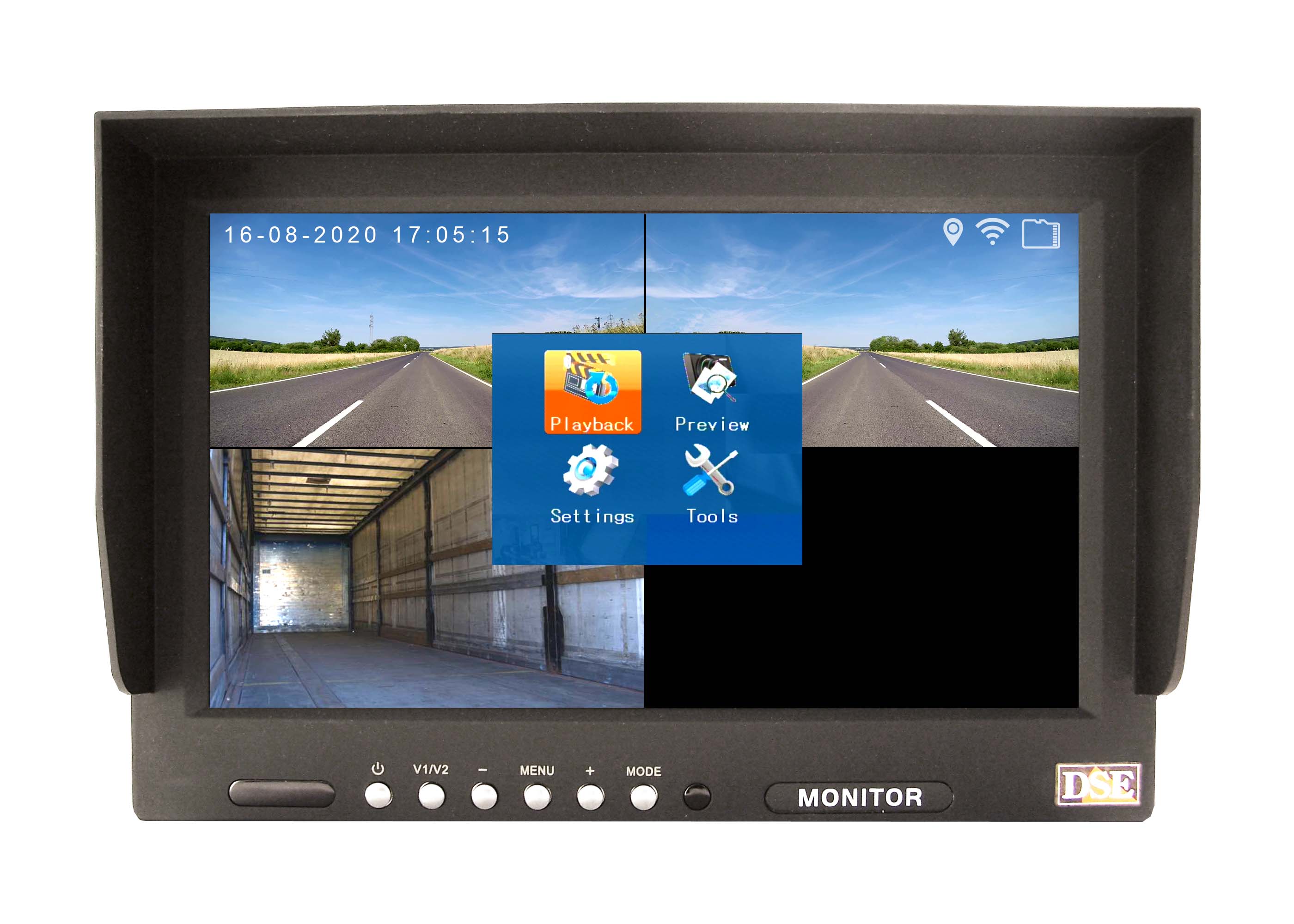 VEHICLES CAMERASThese MDVRs are designed to work with small analog monitors as on the vehicles dashboard there is no room for big VGA or HDMI monitors that we we use in ordinary DVRs. Of course, the perfect match is with our vehicle monitors, designed to be installed in the driver's cab. The configuration menu of these vehicle DVRs is optimized for display on a mini monitor and can be easily controlled from the driver's seat with the IR remote control included.
