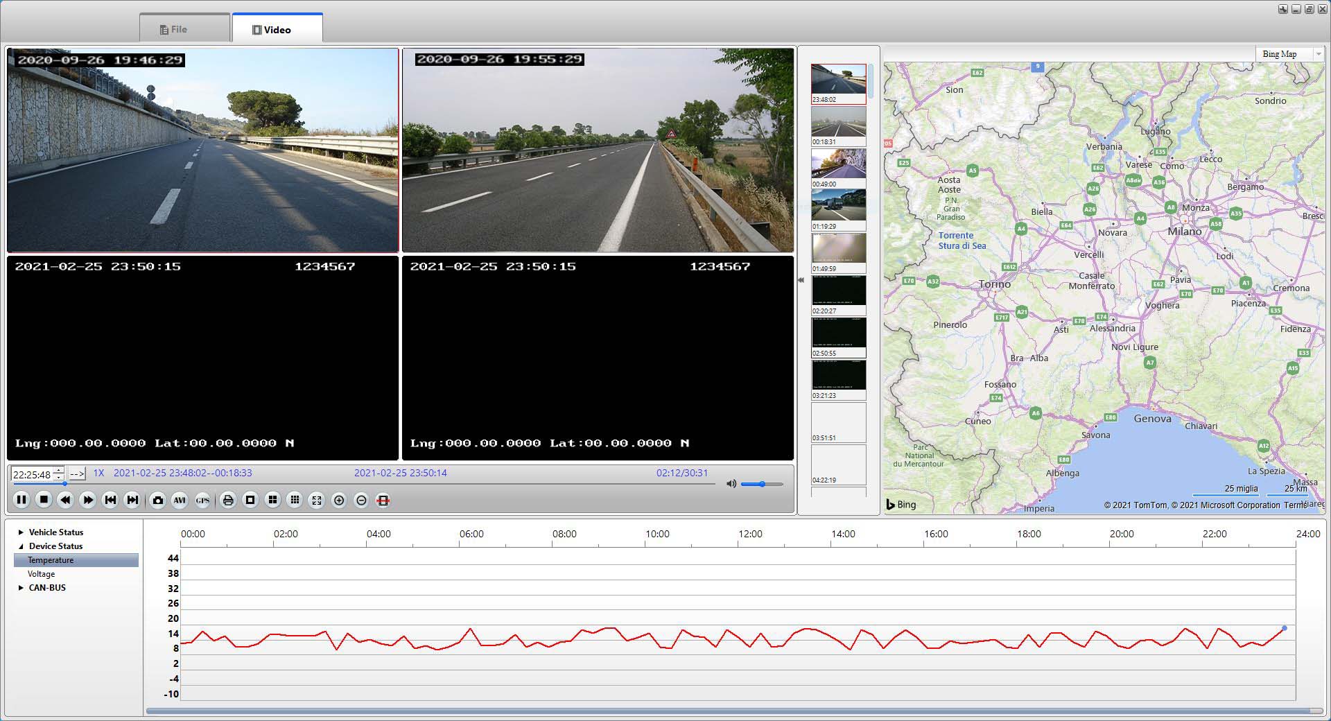 These MDVRs record much more than the video on SD card or Hard Disk. Together with the video, all the data detectable by the MDVR, such as date, time, vehicle data and geographical coordinates are saved. With the PC player you can search and play movies along with all vehicle data.