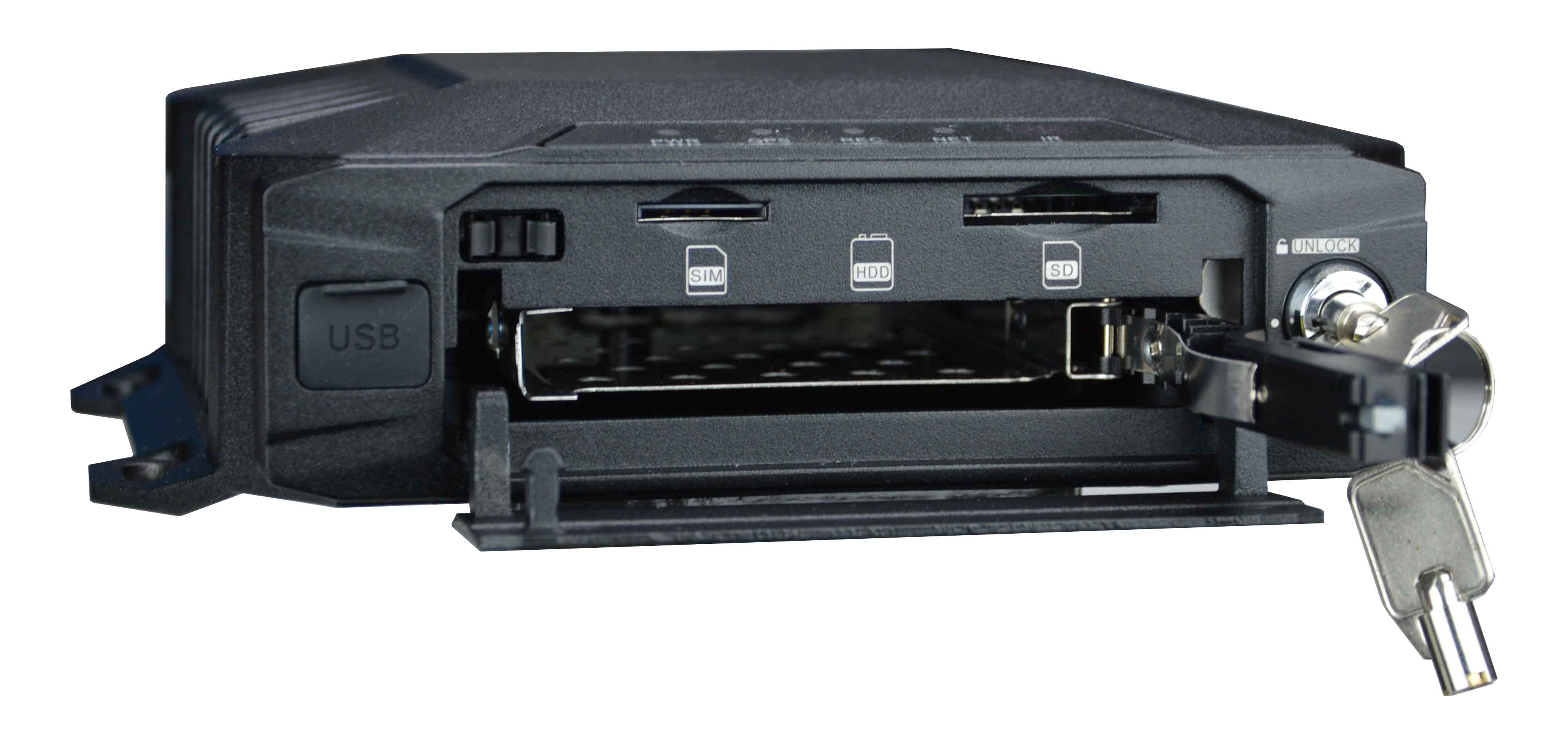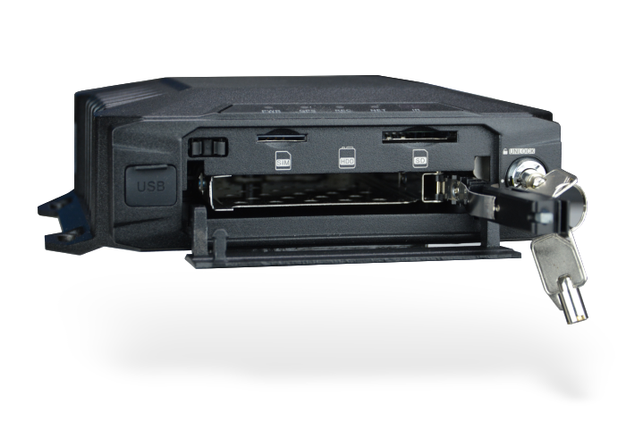 Some models can also accommodate a 2.5" hard drive for larger storage capacity. 2.5" Sata HDD and SSD up to 2TB are supported. Unlike cheap "dummy MDVRs" on the web, in our MDVR the disk is mounted on a cushioned slide with a key locking mechanism that protects the disc from vehicle vibrations.