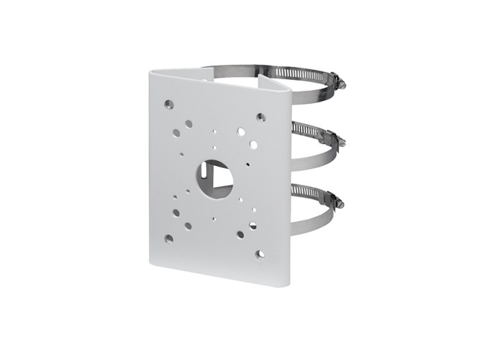This pole mounting base is suitable for our speed dome cameras, both IP and AHD. You can use this collar to mount the dome camera on a round pole. Although being designed for our speed dome cameras, with a little adjustment of the holes, you can also use this bracket for other motorized or fixed cameras which do not have this dedicated accessory. This collar consists of a metal mounting base with 3 steel adjustable clamps suitable for poles with a maximum diameter of 15 cm. For mounting on larger poles, you can replace the standard clamps with longer ones. This accessory is designed to be usedused together with the standard wall bracket included with the cameras.