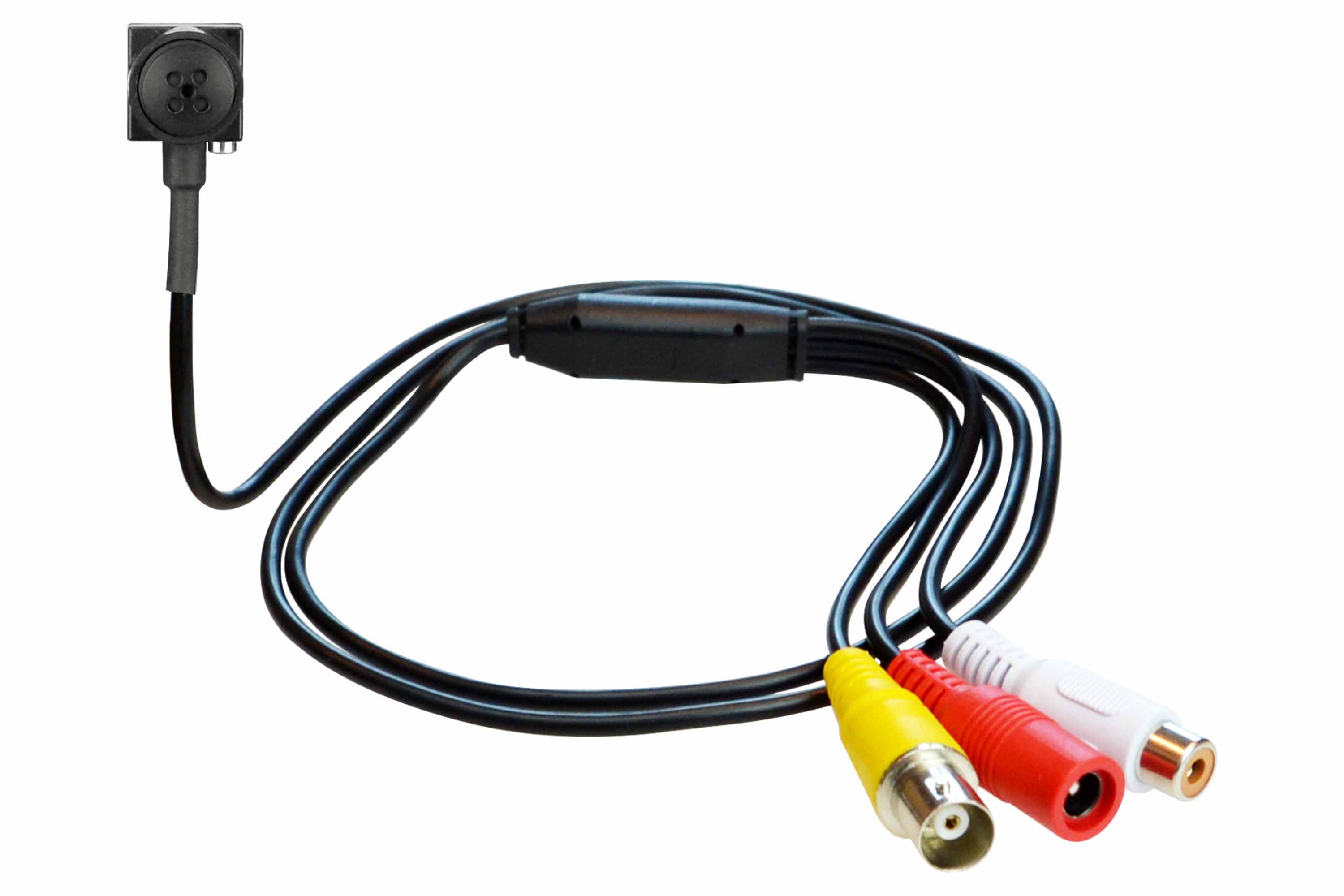 These mini-cameras also have a built-in microphone that you can connect to the audio input of the DVR. The cable used for audio wiring is very often a simple cable pair. If you buy combined cables, with a coax + two twisted pairs in the same sheath, you can connect these cameras using just one cable. Depending on the model, the microphone is in the camera or built-in the connection cable. The cameras are also equipped with an RCA audio input for an external microphone. It can be useful if you want to install an external a microphone far from the camera.