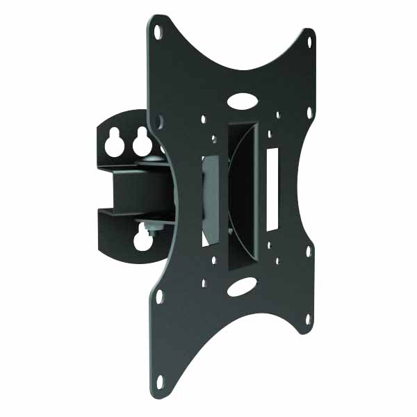 Wall-mount bracket for both TV and PC monitors. Adjustable swivel joint.