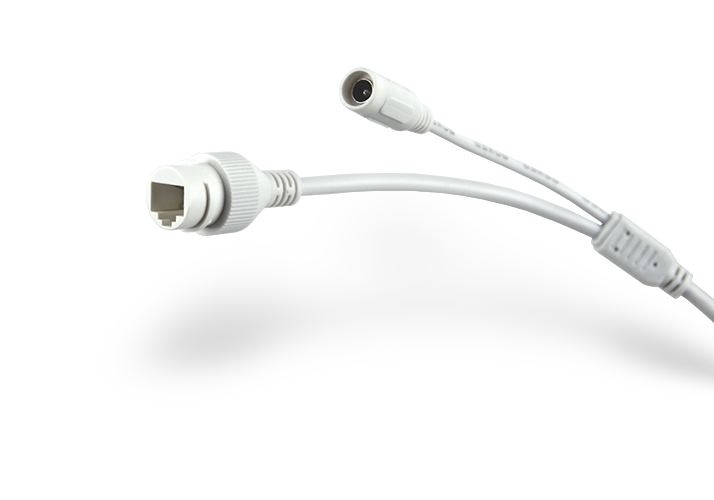 All wifi cameras in this series are equipped with a power plug to connect a 12VDC power adapter, that is not included and must be purchased separately. WiFi cameras are designed to operate without wires, therefore, do not support POE power supply. In the picture aside, you can see the camera terminals, with the 12V power plug and the RJ45 network port that you need for the initial configuration. If you install the power adapter close to the camera, you can place it inside the waterproof junction box, that is available as an optional accessory.