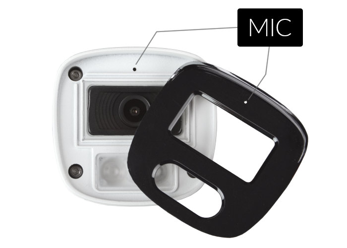 In this range of WiFi IP cameras you will find several models that come with built-in microphone for audio. The microphone is placed behind a small hole in the front cover providing clear listening-in indoor and even outdoor, if the target is not too far. Obviously audio is also wireless.