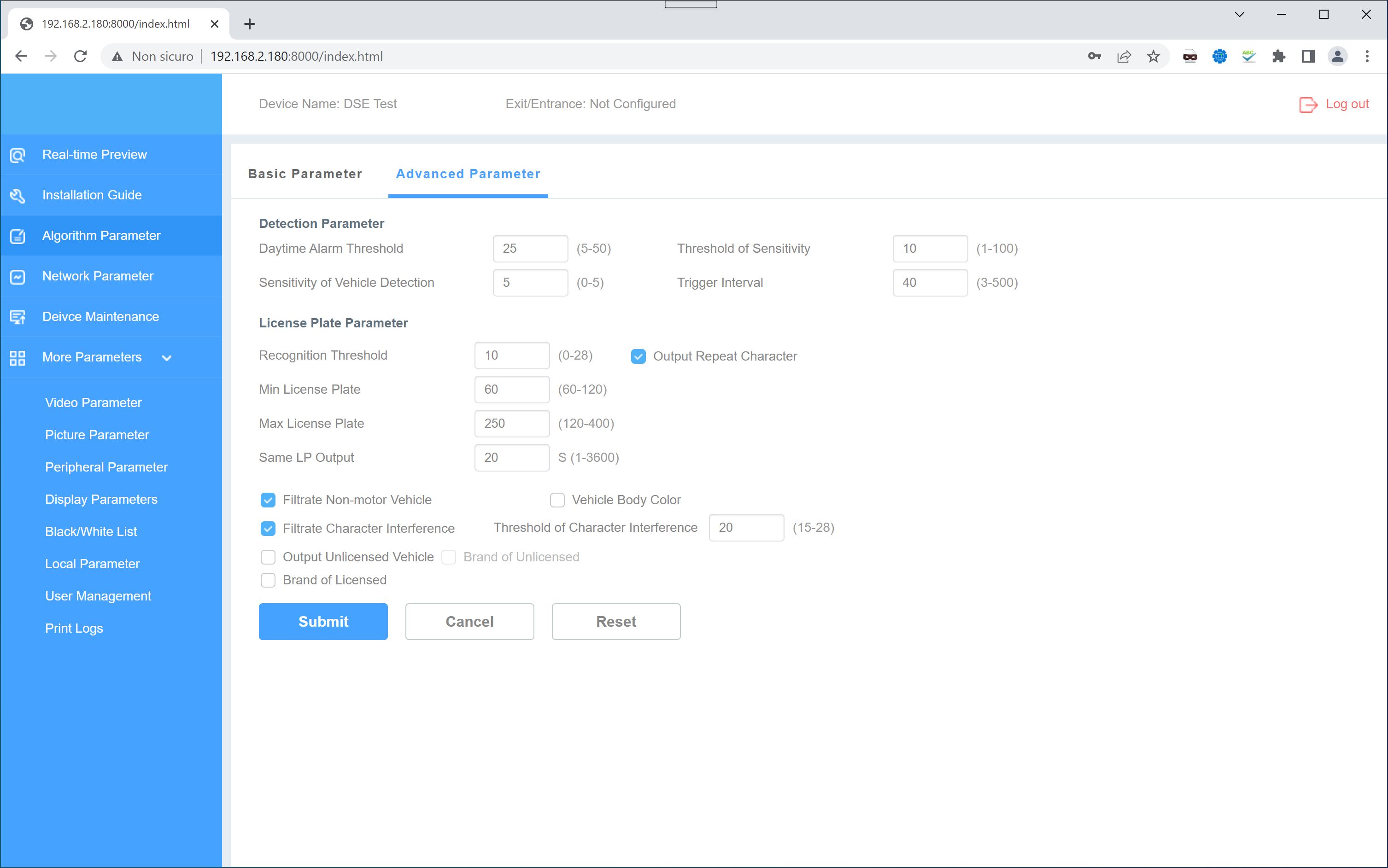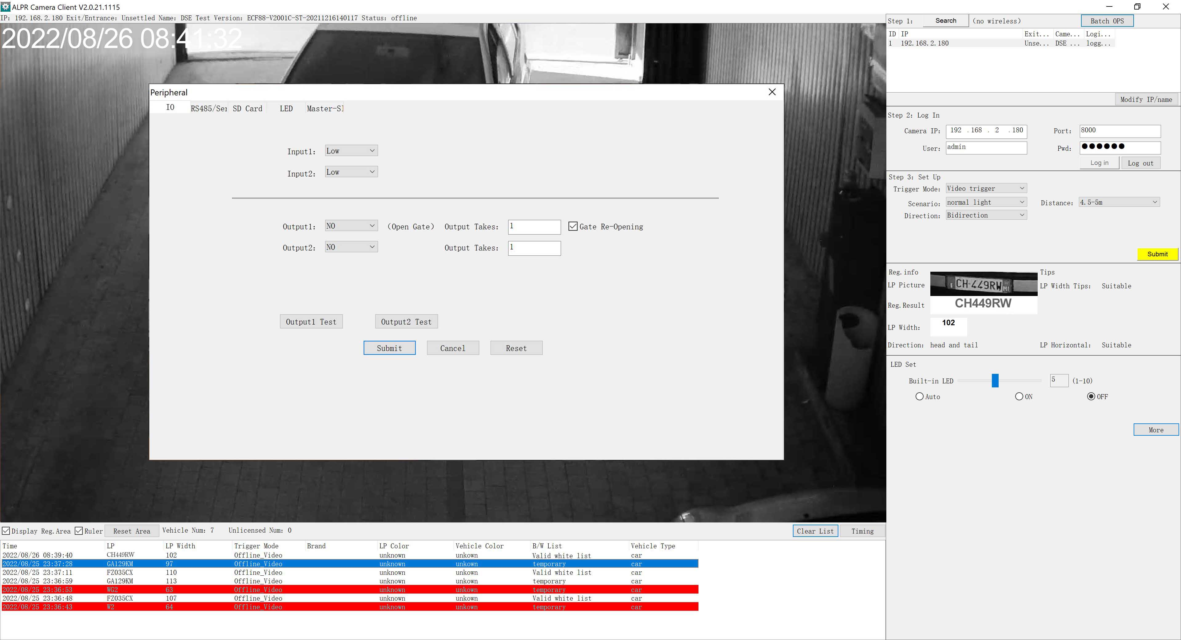 | Actions after vehicle detection | Upload pictures via FTP/HTTP POST, Sending info to sofware, Door opener, Save pictures to SD card |