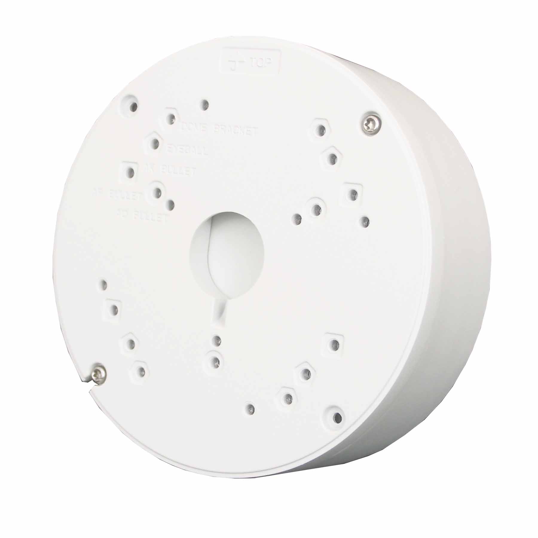To make installation easier, an optional mounting base is available. This WEATHERPROOF BOX is designed to protect all cable connections and features a pre-drilled cover for direct camera installation. If you need to mount the camera on a pole, you can also purchase the dedicated pole-mount accessory.