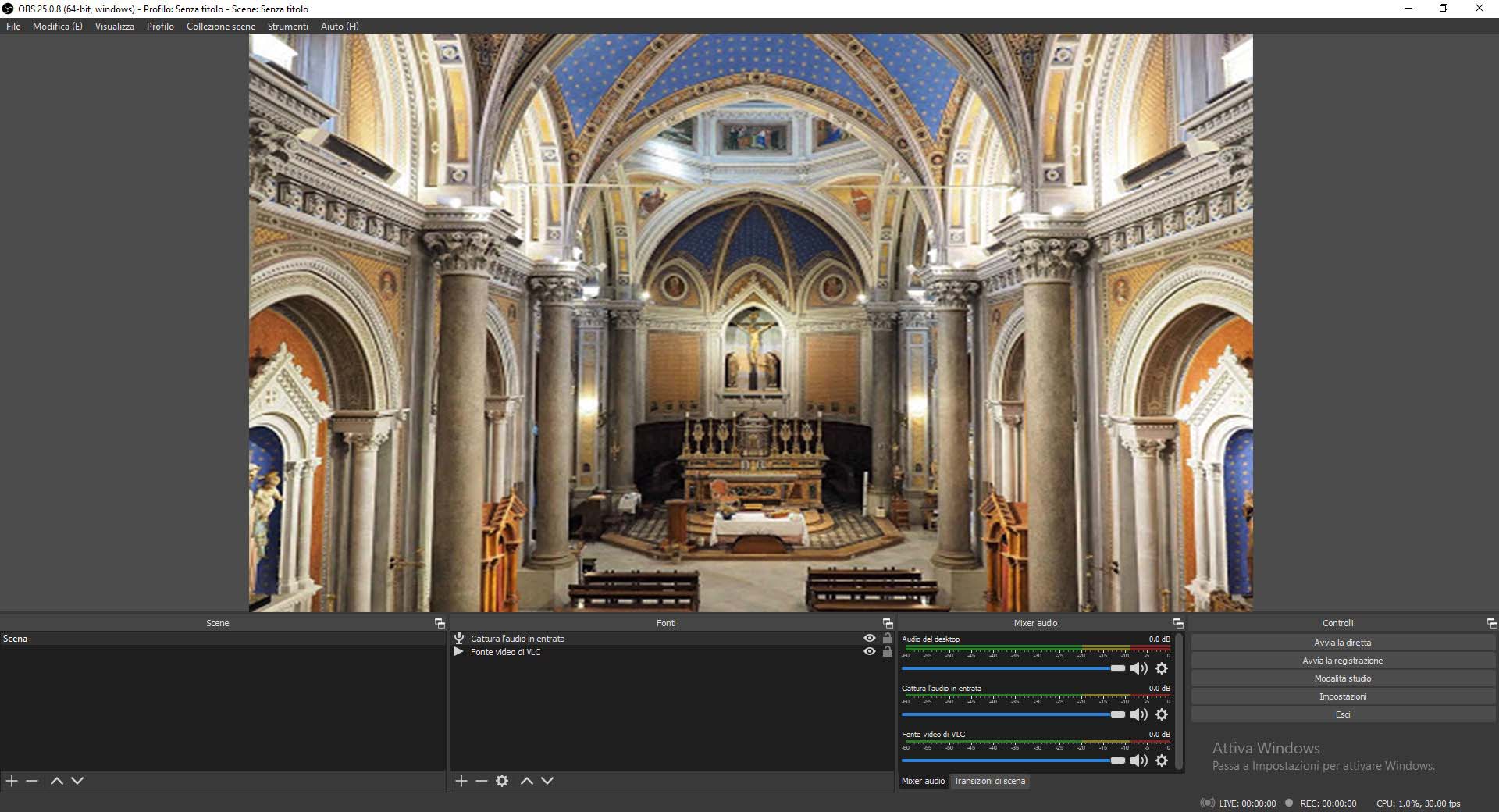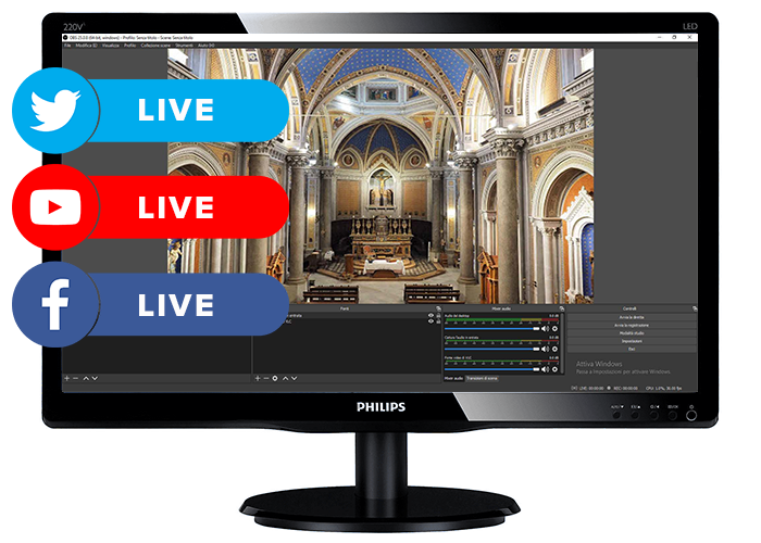 Our POE motorized cameras are ideal for streaming video on the web. To broadcast your camera online you must use a video broadcast software, such as OBS shown in this picture. With OBS you can broadcast the video of our cameras live on Facebook, YouTube, Twitter etc. The camera connects to the OBS software as "VLC Video Source", using the RTSP string you find in the manual. You can disable all date and time stamps in the configuration menu. With the browser you can move the camera and zoom-in to control the picture. Videostreaming with our cameras is now very popular in churches, for broadcasting religious ceremony, and schools, for online teaching.