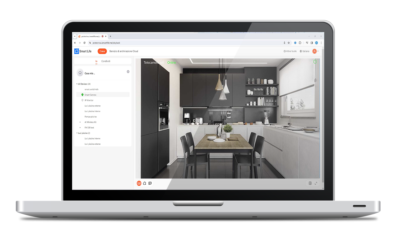 These cameras are small and elegant, blending seamlessly with your decor without drawing attention, but they are also waterproof and can be mounted outdoors, exposed to rain. The range also includes motorized models that allow you to rotate the view in all directions. You can easily move the camera, both horizontally and vertically, using the directional buttons available in the app.
